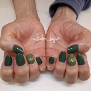 パタータドルチェとシャイニーラベンダーの、シンプル定額『グリッタービジュー』♡ ゴールドのグリッターにパーツを乗せ、控えめなビジューネイルに♪ 梅雨時に人気のパープルを上品に使いました! シンプル定額(ドライケア) ¥5 […]