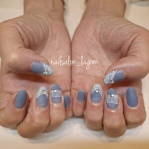 イザヨイにダスティグレー、ザ・ワインバス、ヒッチコックブルー、ホワイトを重ねた、タータンチェックネイル☆