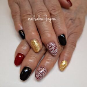 和柄ネイル 2026年1月1日 最終更新日時 : 2025年12月31日 lagom リタレッドにブリリアントホワイトで青海波を描いた和柄ネイル☆ 「未来永劫」や「平穏な暮らし」への願いが込められた縁起の良い柄です! ブラックとゴールドラメのワンカラーと合わせました♡ ワンカラー(ドライケア) ¥5500 当店オフ(付け替え・1ヶ月以内) ¥0 カラー替え(2色) ¥400 アート(2本) ¥1000 合計(税込) ¥7590 Follow me! FacebookXBlueskyHatenaCopy