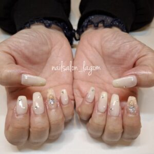 限定ネイル(フレンチ&フラワー) 2022年6月12日 最終更新日時 : 2022年6月11日 lagom 夏の限定ネイル、『フレンチ&フラワー』♪ モンブランベージュのフレンチにゴールドのラメラインを引き、ピンクのフラワーシールをクリア部分に♡ フラワーシールは、ブルー・パープル系かピンク・ベージュ系か選べます! 限定ネイル(ドライケア) ¥6500 当店オフ(付け替え・1ヶ月以内) ¥0 合計(税込) ¥7150 Follow me! FacebookXBlueskyHatenaCopy